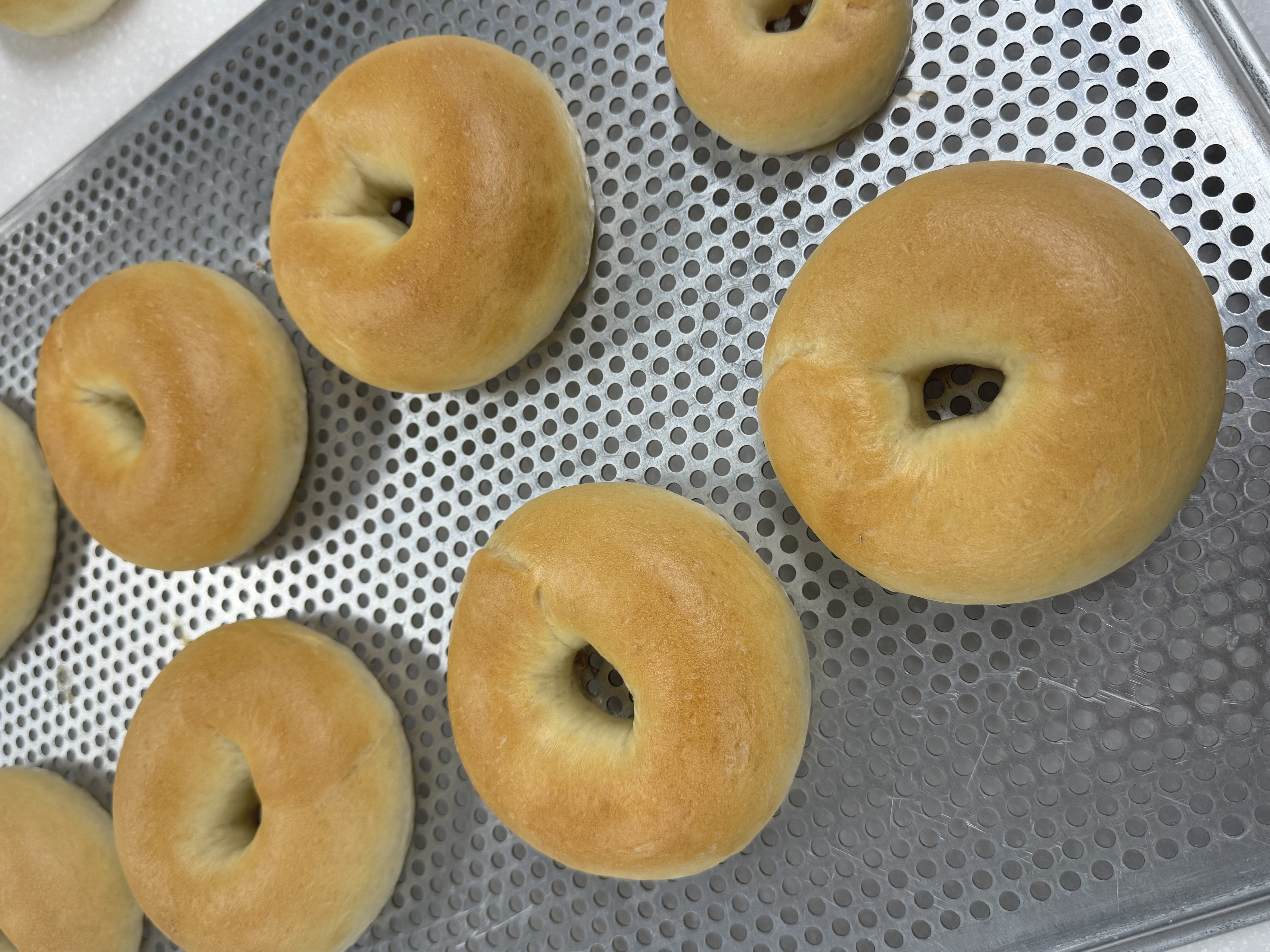 성형된 베이글을 팬 위에 올리고, 25분 정도 2차 발효를 진행합니다.