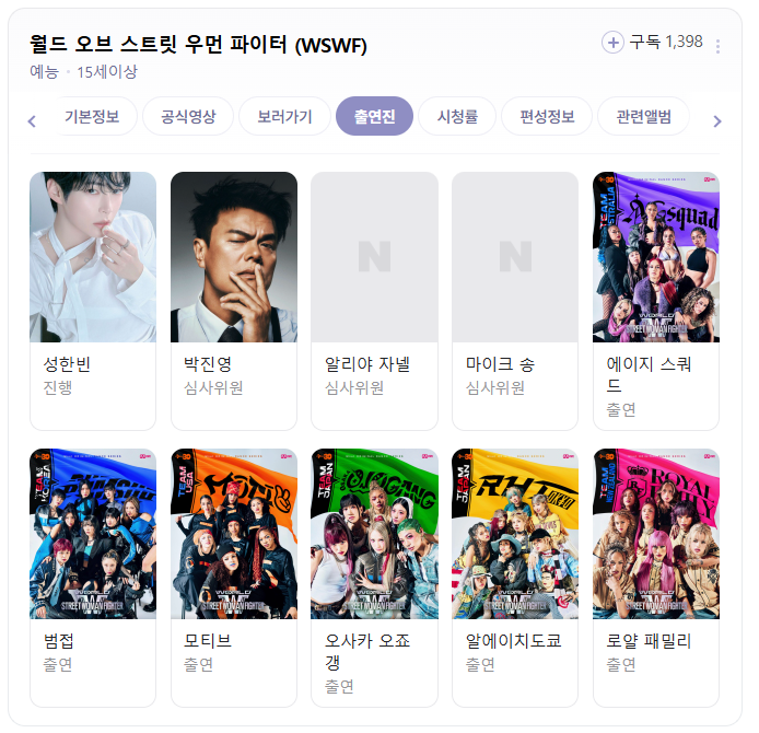 - 범접(BUMSUP) : 한국 대표 크루로, 시즌1의 레전드 리더들이 모인 '어벤저스 팀'입니다.