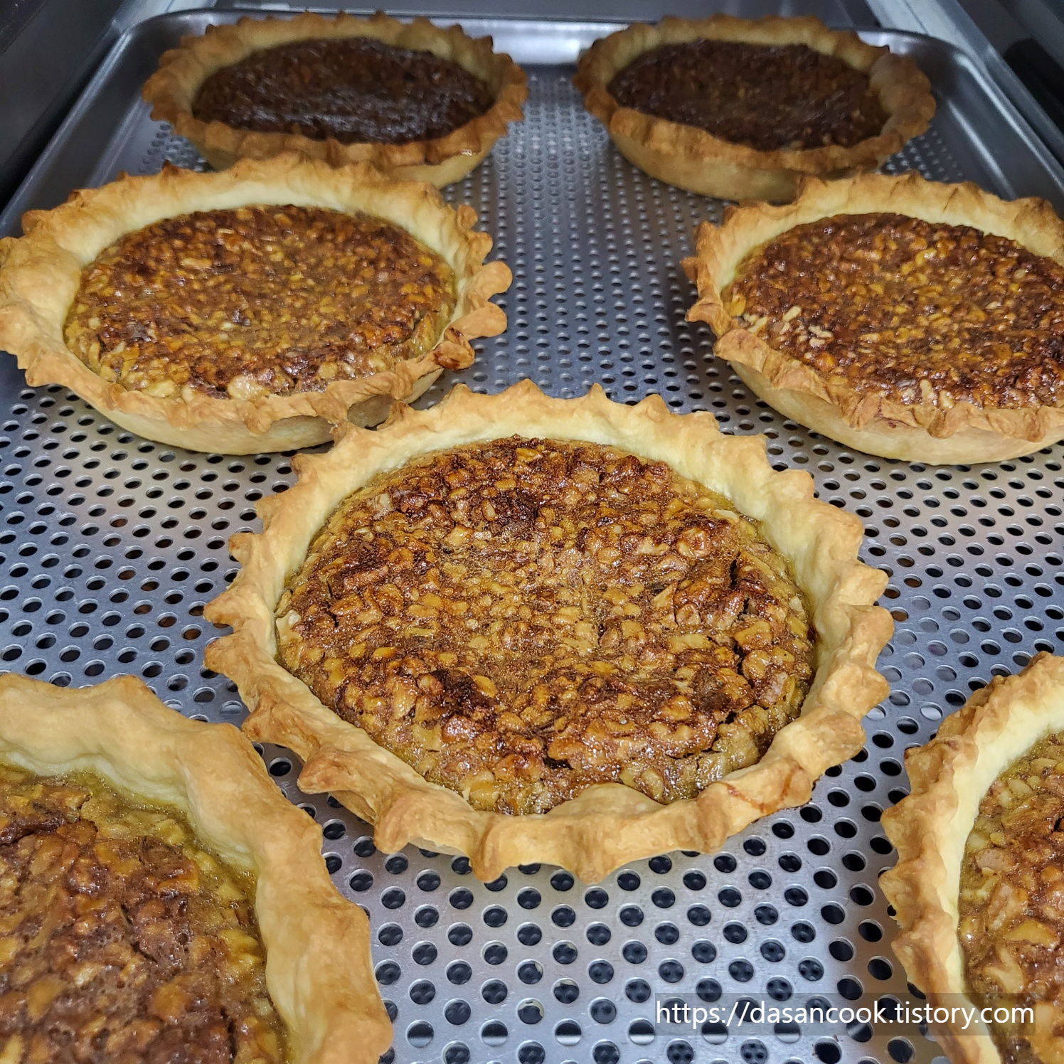 - 구워진 호두파이는 오븐에서 꺼내 식힘망에 올려 완전히 식혀줍니다.