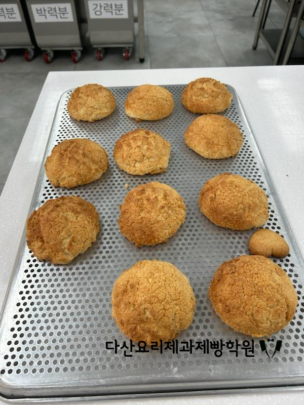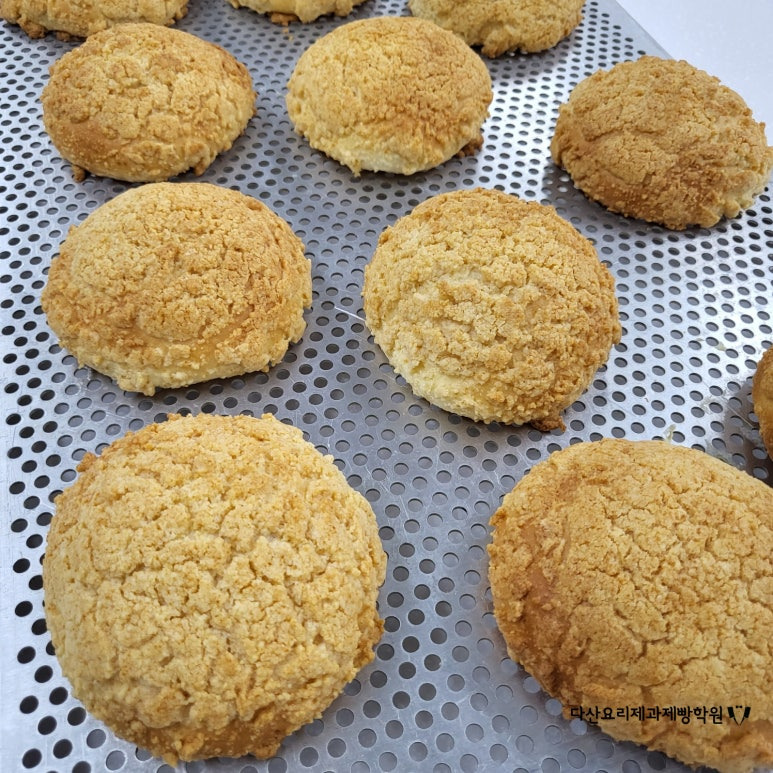 소보로빵은 단순한 단과자빵처럼 보이지만, 소보로 토핑을 만드는 손기술과 빵 반죽의 조화가 중요한 과제입니다.